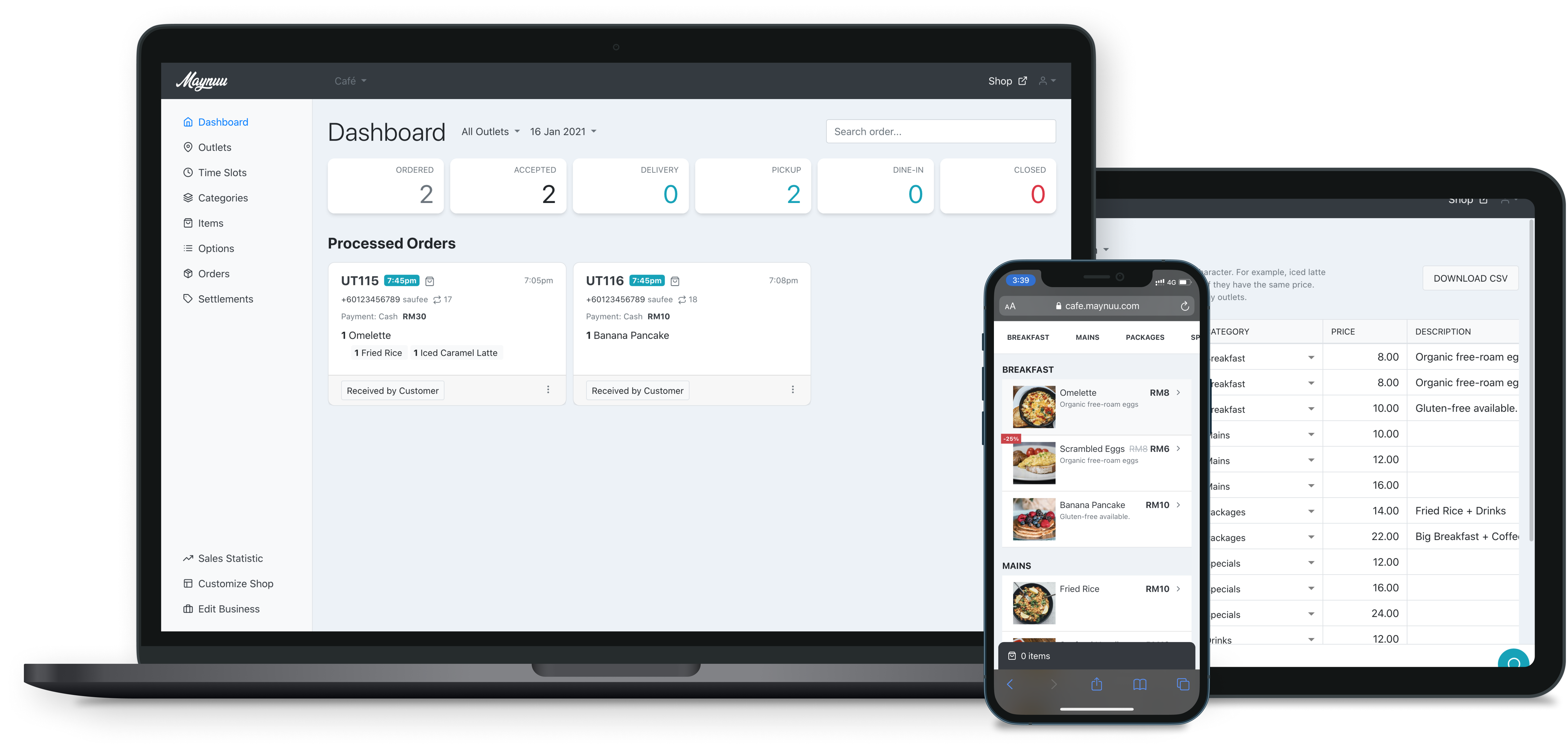 Whether delivery, self-pickup, QR-code ordering, or reservation, you will be monitoring the same dashboard, so you don't have to open multiple apps for different ordering.